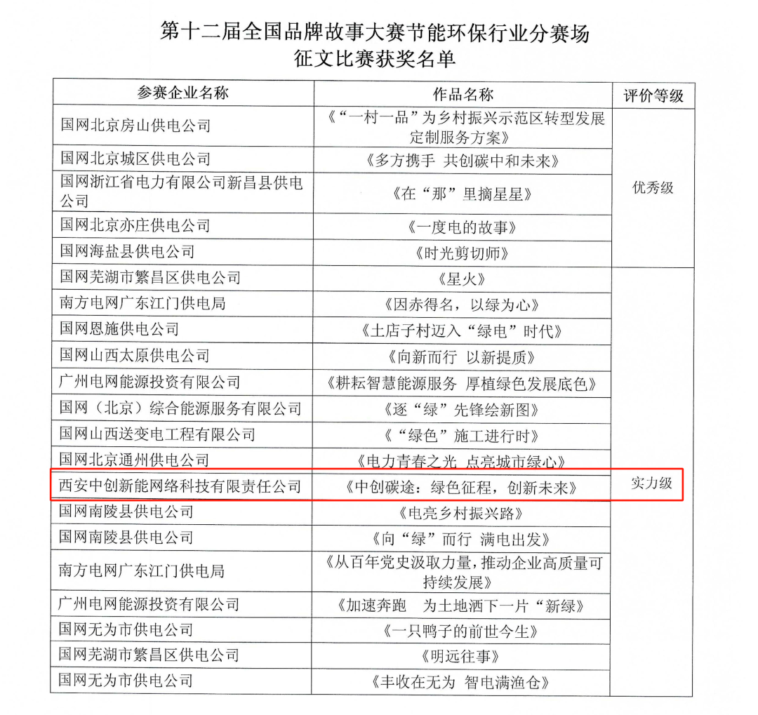 日(rì)前,由中國(guó)質量協會(huì)主辦的(de)第十二屆全國(guó)品牌故事(shì)大(dà)賽圓滿落幕。中創新能(néng)主創申報(bào)的(de)←征文(wén)作(zuò)品《中創碳途:綠(lǜ)色征程,創新未來(lái)》榮獲第十二屆全國(guó)品牌故事(shì)大(dà)賽節能(nΩéng)環保行(xíng)業(yè)分(fēn)賽場(chǎng)征文(wén)總決賽“實力級”獎項。